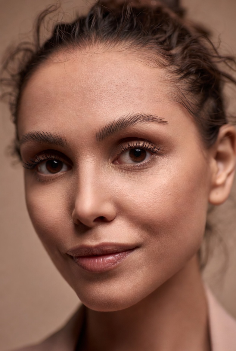 Texture realism is the main differentiator between an “AI-looking” headshot and a convincing photograph. By explicitly asking for natural pores, fine facial hair, and crisp focus on the eyes, you push the model toward the visual cues humans unconsciously trust. The wardrobe think a structured blazer and minimal jewelry signals professionalism and modern elegance. The expression is calm and self-possessed, reinforcing a refined, confident mood that works across branding, editorial mockups, profile imagery, and portfolio-style portrait sets.